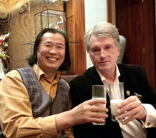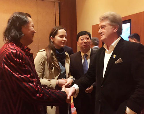 乌克兰前总统尤先科与画家薛林兴共同举杯祝愿中乌友谊万岁