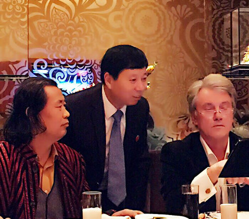 中国健康新闻网(记者:许顺喜 摄影:聂伟丞)中国著名画家薛林兴、薛海鹰父女,著名社会活动家刘瀚锴先生,于2017年3月21曰晚,在北京与来华访问的乌克兰第三任总统尤先科先生一行进行了长时间的文化艺术交流并共进晚餐。