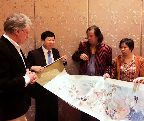 画家薛林兴及刘瀚锴与著名外交官列娜亲切交谈
