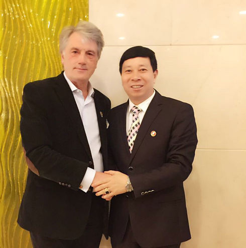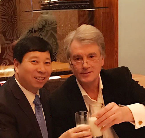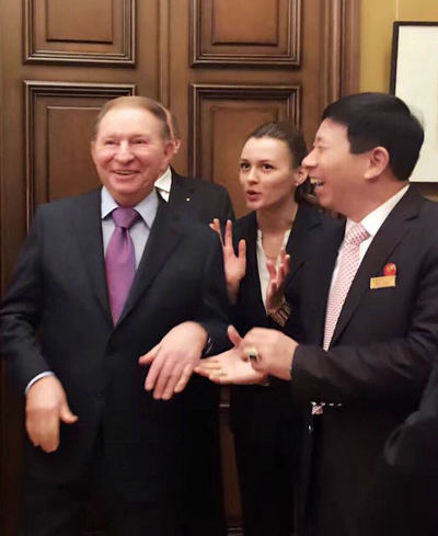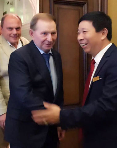 乌克兰第二任总统库奇马先生去年与刘瀚锴先生亲切交流并留影