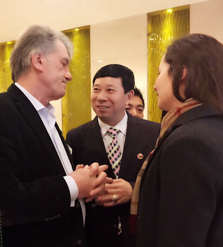 中国健康新闻网(记者:许顺喜 摄影:聂伟丞)乌克兰国家第三任总统尤先科,分别于3月14日和3月21日,在北京亲切接见了我国著名社会活动家、白俄罗斯共和国文化联盟中国首席代表刘瀚锴、著名书画艺术家薛林兴、敖特、刘俊以及乌克兰驻华大使馆文化专员列娜等一行。