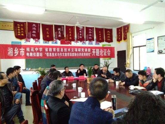 清风网讯(北京时间云记者 李建辉 陈海波)3月23日下午,湘乡市桂花中学举行了省级课题《信息技术与作文教学深度融合的应用研究》的开题论证会。本次论证会特邀湘潭市教技室主任林向荣、副主任翁可立、湘乡市仪器站站长王志成、湘乡市课题组等专家前来指导。
