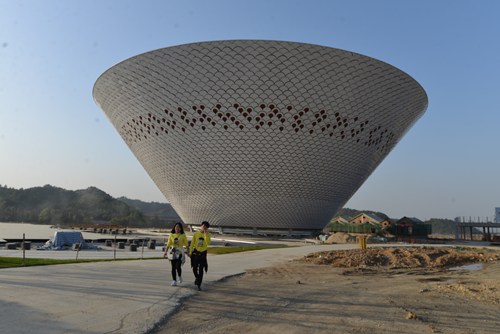 一个全国最大“瓷碗”造型建筑在江西省景德镇市绿地国际陶瓷文化旅游城基本落成。该“瓷碗”建筑是该城艺术中心,该中心建筑面积约一万平方米,共四层,每层8至10米。外墙采用纳米喷涂铝单板,白天洁白如玉,夜晚可通过4D成像投影技术,在外墙上勾画变幻无穷、瑰丽多彩的唯美画境。该中心可举行会议会展、专项比赛区、文化沙龙等文化艺术活动。预计2017年5月1日正式投入使用。(艾世民、刘力溱摄影报道)