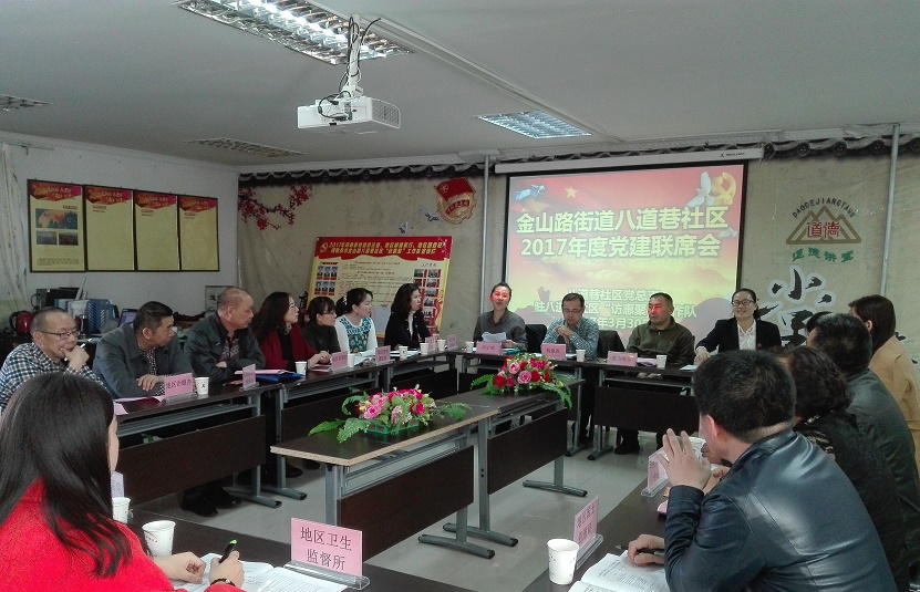 清风网讯:(通讯员 沙永强)为进一步统一部署社区共驻共建单位党建及近期重点工作,阿勒泰市金山路街道八道巷社区党总支联合地委政法委、地区邮储银行、地区团委驻金山路街道八道巷社区“访惠聚”工作队举行“金山路街道八道巷社区2017年度党建联席会”。