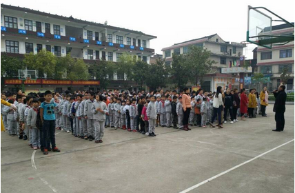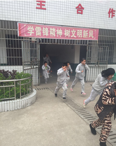 上午9点整,光明小学突发“火灾”,校园内烟雾弥漫,刺耳的长笛警报声响彻校园,使全体师生立刻警觉起来。所有老师立即到达指定岗位,引导学生快速撤离教室。各班学生排成两列纵队,训练有素的猫着腰,用手帕、毛巾或手掌捂住口鼻,按照演练方案规定的楼梯口有序撤离到学校操场的安全地带。全校600多名师生从教室撤离仅用1分08秒时间便到达指定地点集合。