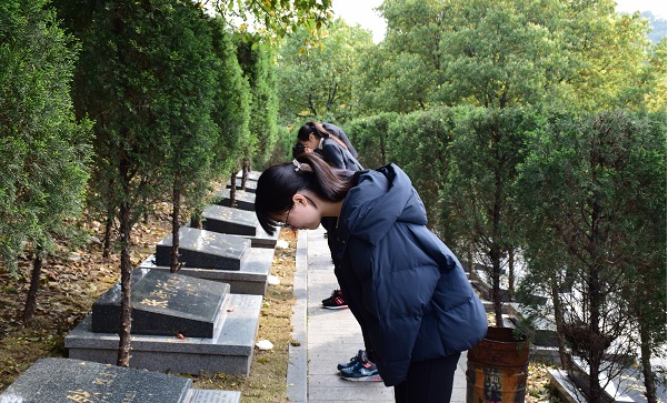 全体成员在烈士陵园的革命烈士纪念碑前举行了隆重而庄严的扫墓仪式,向烈士墓敬献白花,瞻仰烈士墓,向烈士默哀一分钟。在钱壮飞纪念馆进行参观学习,重温历史,了解革命烈士的英雄事迹,并就此展开现场党课。学生党员从爱国精神、革命精神等方面展开宣讲论述。活动结束,学生党员许殷芝感慨道:“我们要倍加珍惜先烈们用生命和鲜血换来的和平环境,继承和发扬先辈们的崇高风范,为实现中华民族的伟大复兴而努力奋斗。”