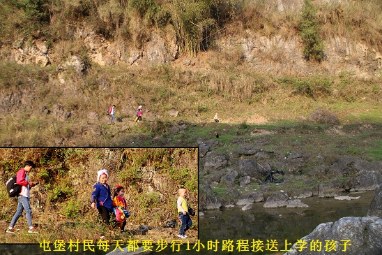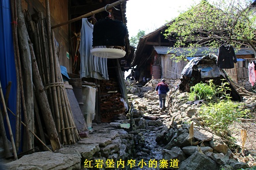 红岩堡地处一座喀斯特地貌的孤山内,三面环水,尽管山岳之后倚靠背坡,但由于整座山头呈突兀断开之状,在悬崖峭壁的阻挡下,纵是灵巧的猿类,要进入红岩堡内也十分困难。正因为堡内地理位置的特殊性和发展难度大等,目前这座村落里的200多人口仍然生活在这处似乎与世隔绝的山窝里,孩子们上学需要步行1小时的路程才赶到学校。每年在冬春旱季的清水江枯水期,人们还勉强从寨内唯一的“生命通道”出入,一旦到梅雨季节,江水高涨,全寨子的男女老少出行都要靠船只接送,或攀岩吊绳冒险进出,给生产生活带来巨大的困难。在文化多样性相互交融的今天,红岩堡正因为仍然保持着这种“闭关”和“自封”状态,这才成为目前在黔东南甚至贵州省都难以找到的“疲惫家园”。