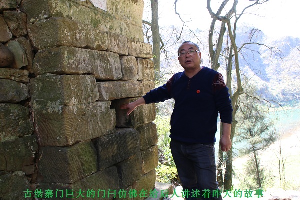 如果你怀疑这个村子在“古”上有问题的话,那么请漫步从寨前江边的“憩气坪”往西走50米,就可从10余米高的摩崖石刻上得到证实。崖壁上4列阴刻的繁体字在经历数十代人的风雨冲刷中,仍然醒目可识。从右至左依次为:“黄金门堡”4个大字,接着的两列是“钦差镇御兴隆卫锦衣卫指挥蒋献书”,最后的落款为“洪武二十四年岁次辛未三月十一日。”明洪武二十四为公元1391年,距今已有626年的历史。蒋献其人,据史志记载,他为明朝皇帝朱元璋的第二任锦衣卫指挥使,也是一颗皇帝的任由棋子。朱元璋创建锦衣卫后,明朝共有26任指挥使,其中第一任为毛骧,第二任为蒋献,第三任为纪纲……毛骧死后,蒋献继任锦衣卫指挥使。洪武二十六年(1393),朱元璋为加强集权,借莫须有的欲图谋反罪名强加于凉国公蓝玉,诛杀了这位开国大将后,又大肆株连杀戮功臣宿将,这是我国历史上一段重大的政治迫害案件。继“蓝玉案”后,朱元璋出于不可告人的目的,又将蒋献处死。这位驰骋疆场的有功之臣在为朱元璋主持完成了“蓝玉冤案”后,最终也没有躲过心胸狭窄的暴君的魔掌。从笔者个人以史志的思绪研判,这位在红岩堡上留下墨宝的将军,当时只是被朱元璋派到兴隆卫一带来巡视而已,不可能在此长驻领军驻防。蒋献如同历代“名人效应”一样,官员所到之处,方人必请留题签字,以表诏示和励志。这样,才有红岩堡旁边的不朽摩崖古迹。如果蒋献没有二、三品官阶,谁还想烦劳动之?可见,红岩之堡当时在朝庭的地位何其重要。