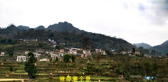 枫香寨与塘都村是国家级传统村落,位于重安镇政府以北17公里左右的深山里。两个村子草木相连,都是一衣带水的革家古寨。枫香寨的古桢楠树位于村内酒寨的跑马道旁,树高约40米,树干需3人合抱才能测出直径;塘都寨的桢楠树位于寨子下方500米处,高约30米,树干直径需4人手牵手方能完成合抱。据当地的老人介绍,这两株“桢楠王”,他们两个寨子的开基先祖廖蓬模、李涝当早于800年前分别来到这里定居时已存在,而且已经是这么高大了。所以自古以来,两个村寨的革家群众一直把它当成庇佑一方的神灵,加以保护和祭拜。