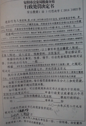 2016年7月29日在无任何执法文书情况下,田兵带领法院破产庭两人,由公安维持秩序,雇用社会闲散人员强行撬开大门,来势汹汹,不顾医院患者生命安危,抢占医院,驱除中心全部医护人员。更为震惊的是在8月1日,殷都区卫计委在该中心法人代表毫不知情的情况下,仅凭在市人口和计划生育公共服务平台网上的公示,将法人由姚运平变更为田兵,此事显然是违规违法的。