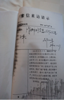 (1)于2014年11月强行任命中心领导班子,企图强占医院,职工上访至安阳市纪检委书记,郑俊峰书记批示:依法办事。