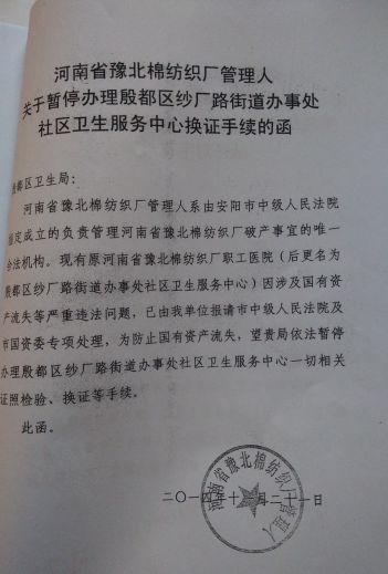 安阳国资委田兵:抢占了纱厂社区卫生服务中心?