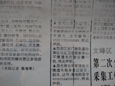 (4)2016年4月18日管理人田兵私自登报声明该中心公章遗失,并到公安局刻章。
