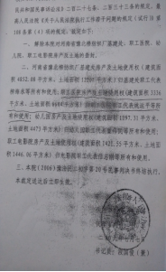 2010年4月我中心将部分裁定后的房屋资产卖给个人。2015年破产管理人田兵多次对洹文苑项目及纱厂土地权属问题提出质疑,经市国土资源局回复,该地块由职工医院职工代表姚运平等通过法院裁定依法取得,土地权属来源合法,并认为,该宗土地权属清晰,四至清楚,不存在土地权属争议。