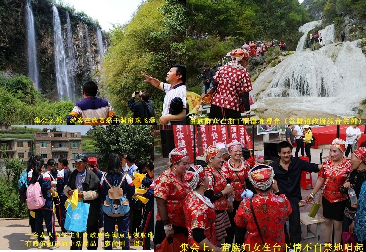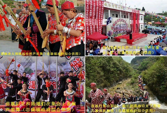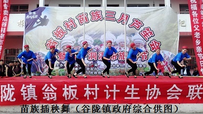 翁板村每年在农历三月十一日都有举行芦笙集会的传统习俗,这个山村尽管是谷陇镇最边远贫困的苗族群众聚居地,然而村内蕴藏着十分丰富的文化旅游资源和传统的特色产业,如有占地约5平方公里的自然景观——翁干洞瀑布群,数百亩细长香辣、糯小米种植基地,等等。为向外界宣传和推介丰富的旅游景观,同时利用省委对当地大力扶持特色产业的契机,在更加提高群众卫生文明程度上激发苗族群众调整农业产业结构,通过运用新科技指导特色农业,实现农村经济获得增量增收的目的。今年该村在举行农历三月十一日苗族芦笙集会中,恰逢世界卫生组织第67个卫生日,对此在为期两天集会期间,翁板村两委和计生协会除了举行传统的芦笙舞比赛外,还组织群众自编自导有关卫生和人口知识的歌谣登台演唱。同时还发函致电邀请凯里、雷山、台江、施秉等县市的苗族卫生计生宣传队前来表演各种风格各异和喜闻乐见的节目,通过寓教于乐的形式,使上万名观众在观看中表演中,不但进一步提高了各自的卫生文明素质,而且通过相互交流和学习,更加坚定了因地制宜发展产业经济的信心和决心。在集会期间,谷陇镇党委、政府主要领导还到场就当前正在如火如荼开展的脱贫攻坚政策进行了宣讲,司法、卫生部门并在集会点上设立法律法规咨询台,在现场解答旅客和群众一些疑难问题时,并向村民们发放了印制有法律法规宣传知识的生活用品。