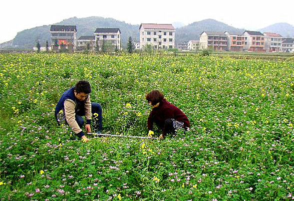 清风网讯:(通讯员 刘志坚 张美华)日前,新邵县农业局土肥站技术人员在坪上镇茅坪村绿肥示范片开展绿肥测产。去年,该绿肥示范片农户在县土肥站的技术指导下,大力推广紫云英、油菜、萝卜“三花”混播,尽管今年前段雨水较多、气温较低,影响了绿肥的生长,但由于田间管理和技术服务到位,示范片绿肥喜获丰收,鲜草亩产达到1550公斤。图为技术人员在进行绿肥测产。