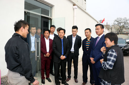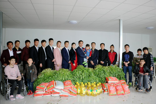 搬运慰问品结束后,周海兴携企业员工集体合影留念