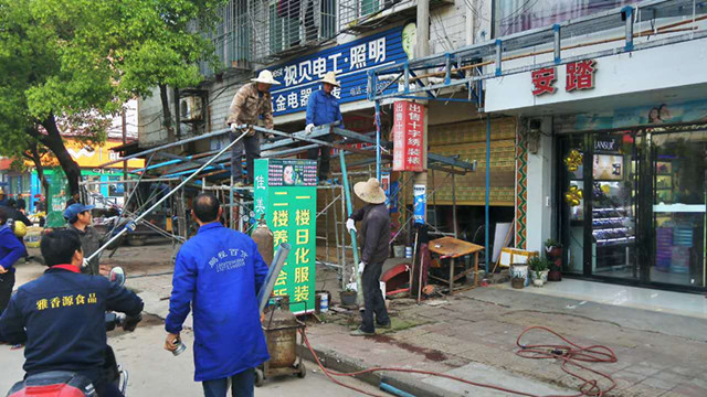 清风网讯:(通讯员 湖北省当阳市半月镇人大办 姜生华 )为进一步美化靓化集镇面貌,彻底清除乱搭乱建等有碍观瞻的现象,湖北省当阳市半月镇从4月10日起正式启动集镇控违拆违工作,此举主要拆除街道遮阳棚和占用人行道设置的广告牌。