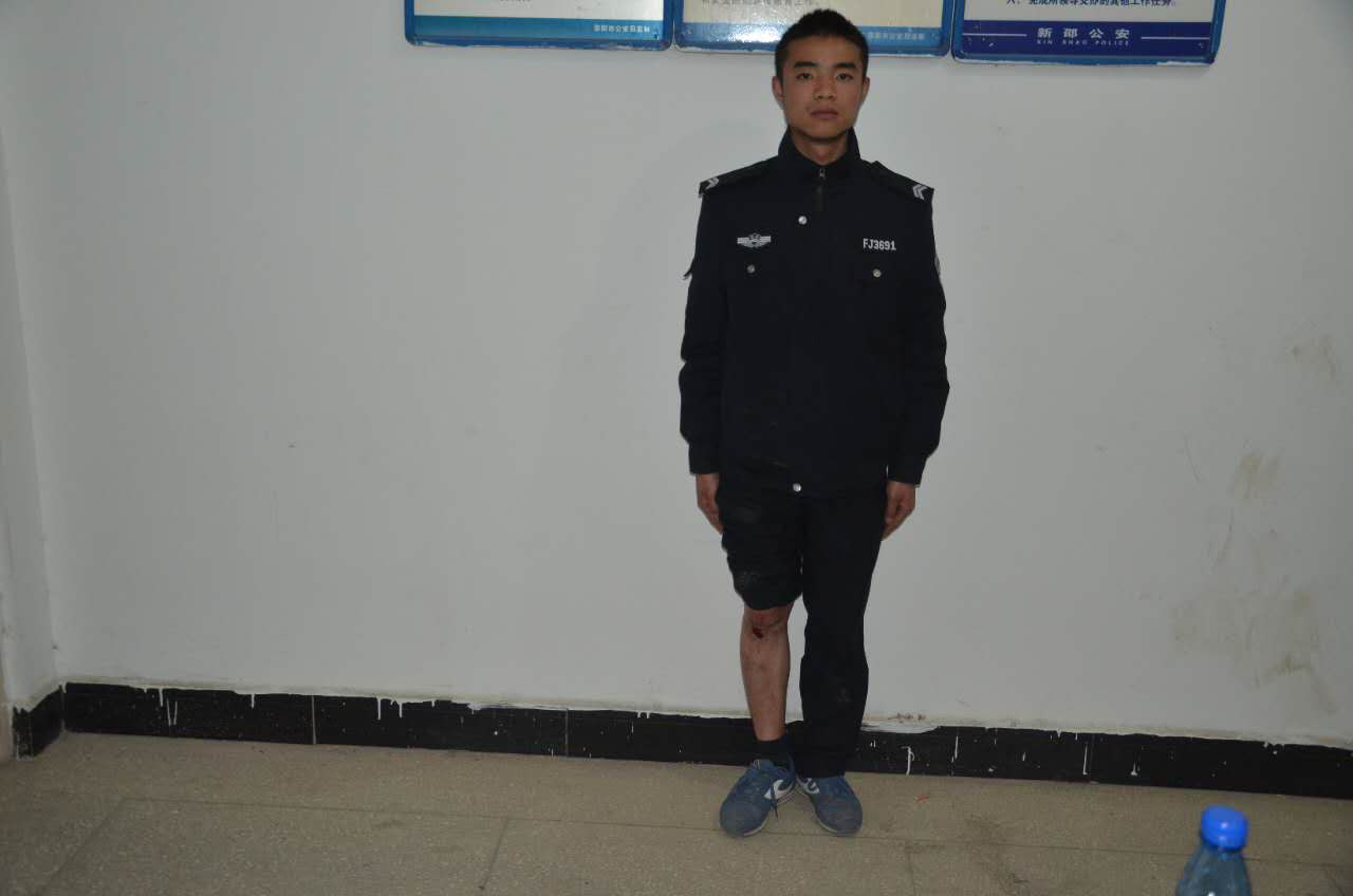 4月10日18时许,犯罪嫌疑人邱某窜至迎光乡车塘村华贵混凝土有限公司厂区内,伺机对停放在公司办公室前坪的一台男士摩托车实施盗窃,在实施盗窃的过程中,被车主彭某发现并报警。在获悉警情后,迎光乡派出所代理所长贺贵友迅速带领值班民警、辅警赶赴现场,与彭某及其工友等人合力将邱某抓获。在抓捕过程中,辅警黄海宗为了捍卫人民群众财产安全,奋不顾身将邱某扑倒擒获,致使本人擦伤右腿膝盖。