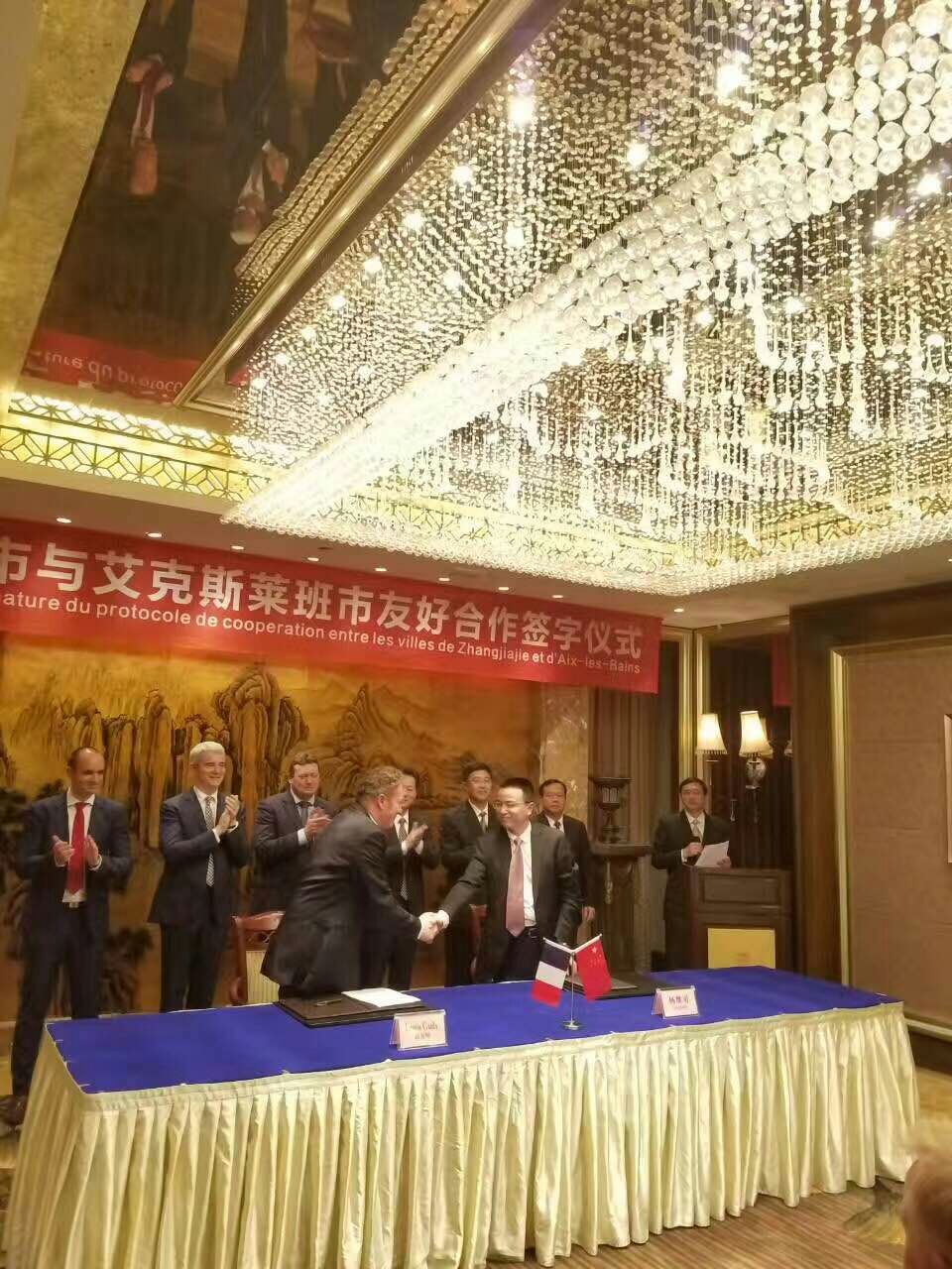 而早在去年,张家界市领导也曾赴艾克斯莱班市深度考察。此次,雷诺.百瑞缇市长一行对张家界的考察回访,巩固了两市的友谊和关系。双方一致同意建立友好城市,加深和加强两市的合作,为两市的共同发展,合作双赢奠定基础。