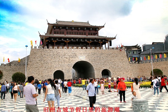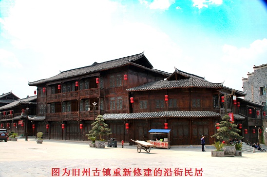 古镇基础设施在保护、修缮和开发上亦是这样,那么镇外集农产业和观光旅游为一体的田园经济也不示弱,全镇依托旧州万亩大坝广袤的自然资源,大力推进现代生态农业产业示范园建设,2013年至今,园区已入住5家企业和7个合作社,完成园区主干道路建设36.556km、机耕道37.07km、生产便道12.39km,沟渠、管网建设53.277km,新建27720㎡钢架单体大棚128个,建成寨勇村1000亩蔬菜基和川心村650亩生态苗木、200亩蓝莓种苗繁育基地,同时在草芦坪村、山邦农场等地发展花卉蓝莓、马铃薯、大棚西瓜等1.3万余亩。这些古迹修旧复旧和高科技农产业示范园的建成和带动,使旧州古镇的旅游业在不断发展,如仅在2016年国庆期间,旧州古镇接待游客人数就过50万人,旅游收入近4亿元。