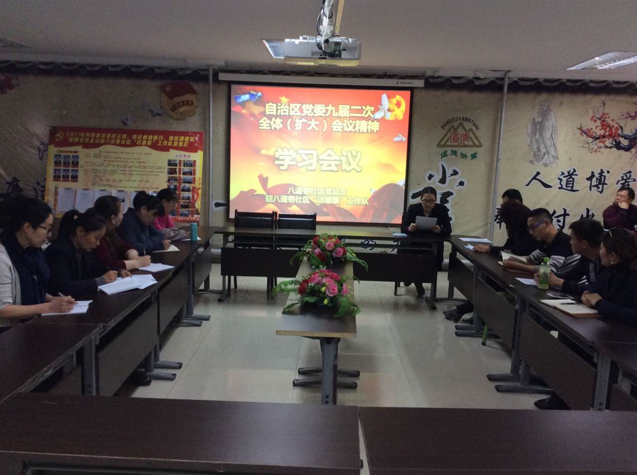 八道巷社区工作队组织全体队员通过《今日新疆网》第一时间观看了《自治区党委九届二次全体(扩大)会议在乌鲁木齐召开》相关报道,并通过新疆卫视的网络视频观看了相关视频,使全体队员感受到大会庄重的氛围。通过大家的集中观看,使得工作队队员在思想根源上对自治区党委九届二次全体(扩大)会议精神有了崇高的敬意,大家纷纷表示将抓好线下学习,提高自身素质。