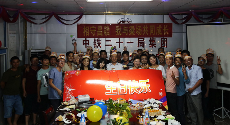 清风网讯:(特约记者 常魁星 通讯员 刘珊 王孚) 6月6日,中铁二十一局江西昌赣客专12标路桥公司分部工会为施工一线的39名职工举行了集体“生日趴”晚会。