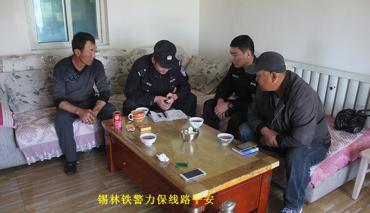期间,西乌旗车站派出所所领导带领民警、警务协勤人员、线路巡防队员深入铁路沿线,对线路两侧网围栏、桥涵两侧封闭情况进行安全隐患排查,并现场对便道门封闭不严、护桩倾倒、网围栏底部空隙过大等隐患问题进行当场整改;并深入沿线牧户开展爱路护路宣传,向群众讲解爱路护路安全常识,进一步提高了沿线牧户的护路防伤意识。
