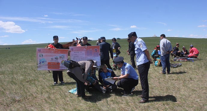 期间,派出所所领导带领民警、警务协勤人员、线路巡防员深入沿线仔细检查了各重点区段、桥涵隧道等部位的网围栏封闭情况,对护网底部间隙过大、护网松垮、沙化严重护桩倾倒等问题进行登记整改;同时,深入乌兰五台敖包会开展“送法进牧区”爱路护路宣传活动,通过展示宣传板、现场讲解、发放宣传手册等多种方式,援引典型案例,向广大牧民讲解在护网内放牧、横越线路、在线路上摆放障碍物等行为的违法性与危害性,进一步提高了广大牧民的护路防伤意识。