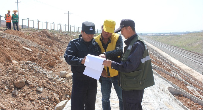 清风网讯:(通讯员 范嘉鑫)为确保沿线治安安全有序,严格落实锡林浩特铁路公安处任务部署,稳步推进“奋战二十天”线路治安大整治行动,2017年6月14日,正镶白旗车站派出所深入集通线173公里--276公里开展隐患排查整治工作。期间,正镶白旗车站派出所组织民警、警务协勤人员、巡防队员等巡防力量开展线路巡查,针对此区间内防护栅栏、网围栏、护网、桥隧涵等重点部位开展隐患回访复查工作,进一步完善治安隐患“问题库”。同时对沿线施工现场进行安全检查,民警向施工单位全面了解掌握了工程的内容和进度,仔细查看了施工现场的各项安全防护措施落实情况,要求相关责任人增强责任意识,加强对现场施工路材路料的盯控,确保施工安全有序。