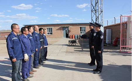 清风网讯:(通讯员 白旗所 范嘉鑫)为进一步提高各单位职工的消防安全意识,强化内部单位职工应对突发性消防安全事件的应急处置能力以及提升内部单位职工的联防联动能力,加强安全防范意识,构筑起打击暴力犯罪、捍卫辖区安宁的铜墙铁壁。近日,呼和浩特铁路公安局锡林浩特公安处正镶白旗车站派出所组织正镶白旗机务油库职工开展了大型消防及反恐演练。
