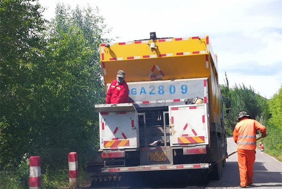 武山公路管理段进行同步碎石封层技术加强公路路面 预防性养护