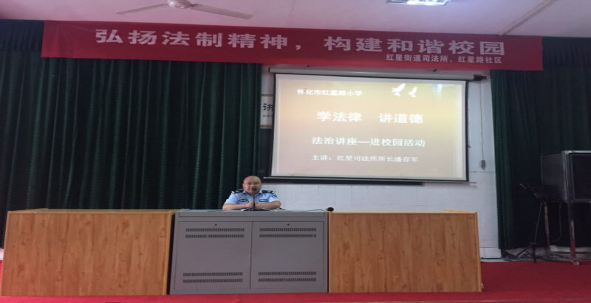 清风网讯:(记者 彭宏炳 通讯员 李慕白)为提高在校学生的法律素质,进一步增强青少年的守法观念和树立正确的世界观、价值观、人生观三观建设,红星司法所联合红星路社区在红星路小学组织开展了“法治讲座进校园”活动,为红星路小学的学生们送去了一场生动的法制讲座,受到师生的一致欢迎和好评。