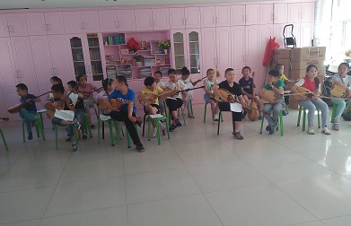 此次培训活动从6月28日开始,7月15日结束,为期15天。近35名未成年人在其家长的陪同下在金山路八道巷社区活动室参加民族艺术冬不拉培训班。