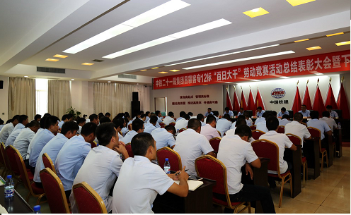 副经理刘忠厚作了《百日大干劳动竞赛活动及上半年施工情况总结》;副经理兼安全总监何惠庆通报了安全质量、标准化管理、信用评价执行情况,总工程师胡瑞泉通报了技术管理情况,副经理唐纪方宣读了“百日大干劳动竞赛活动第三阶段考核结果”,副经理刘琦和高湛齐先后宣读了表彰决定。在上半年劳动竞赛期间,全体参建员工加班加点,辛勤工作,克服了天气炎热、降雨频繁、施工困难等各种不利因素,施工生产、安全质量有序可控,施工进展稳步推进,大干活动制定的各项目标基本实现,保质保量完成了原定施工生产任务。为大力弘扬不怕困难、敢于吃苦、勇于拼搏的精神,项目经理部决定表彰物资部、中心试验室为“先进部室”,表彰曹健等50名职工为大干标兵;表彰三分部党支部、四分部党支部、项目经理部党支部为先进基层党组织;表彰一分部孙志明、二分部刘国平为优秀党务工作者;表彰肖冰等29名党员为优秀共产党员,并对荣获的先进单位和个人进行了现场颁奖。