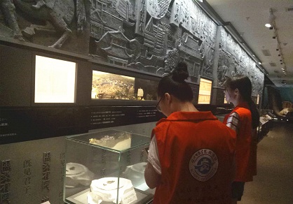 据了解,钱山漾遗址曾出土世界上迄今发现的最早的家蚕丝织品,被誉为“世界丝绸之源”。活动当天,团队成员们有序参观7个功能不同的展厅,亲身感受丝绸之府在中国丝绸史上的魅力,钱山漾文化交流中心总经理朱羽汐表示,丝绸小镇将通过这一窗口和产业阵地,讲好湖州丝绸故事,向世界讲好中国丝绸故事。“除了展示历史,这里还是中国蚕桑丝织技艺非遗产传承中心,也是未来湖州和中国丝绸产业发展的展示平台。我们将利用国内外丝绸文化交流、互联网线上线下互动等多元化手段,促进地区产业活性化,打造具有可持续生命力的特色展馆。”朱羽汐说道。随即,团队一行前往湖州市博物馆,馆内典藏上千年历史丝绸文物及其他文物,大学生党员在参观各类历史文物的同时,切身感受4000多年历史的变迁。