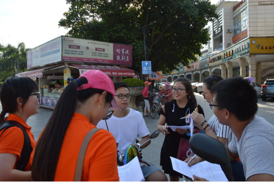 下午,实践队员来到榕城广场。骄阳似火,似乎象征了实践队员们实践的热情与激情。实践队员们克服心中的胆怯,分为四个小组分头发放问卷。一组的队员们首先走进一家快餐店,一桌刚高考结束即将离开中学的学生非常乐意的填写了问卷,并表达了自己对诚信的看法。他们虽然接触社会较少,但是校园里仍然存在失信现象并习以为常,他们还表示,还是相信学校的诚信教育可以改善这样的不诚信现象,同时也会从自己做起,做一个诚实守信的人。二组的队员们在广场上向一群年龄在30-40岁之间,步入社会3-5年的青年人发放问卷。他们提出了对诚信建设自己区别于学生的看法,对社会各个领域的诚信建设有了自己切身的体会,虽然他们表示对当今社会的诚信建设不满意,但他们仍然相信未来社会的诚信度会不断进步。