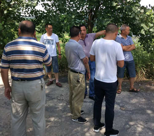 邵东县交通局局长何胜明与县财政局等领导在火荷公路商议抢修工作