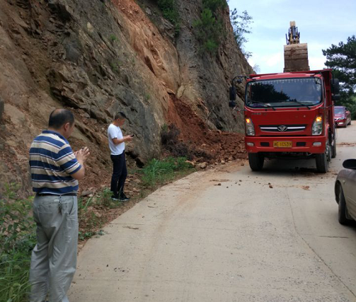 县农村公路管理所邓伟所长在灵简公路指挥抢险工作