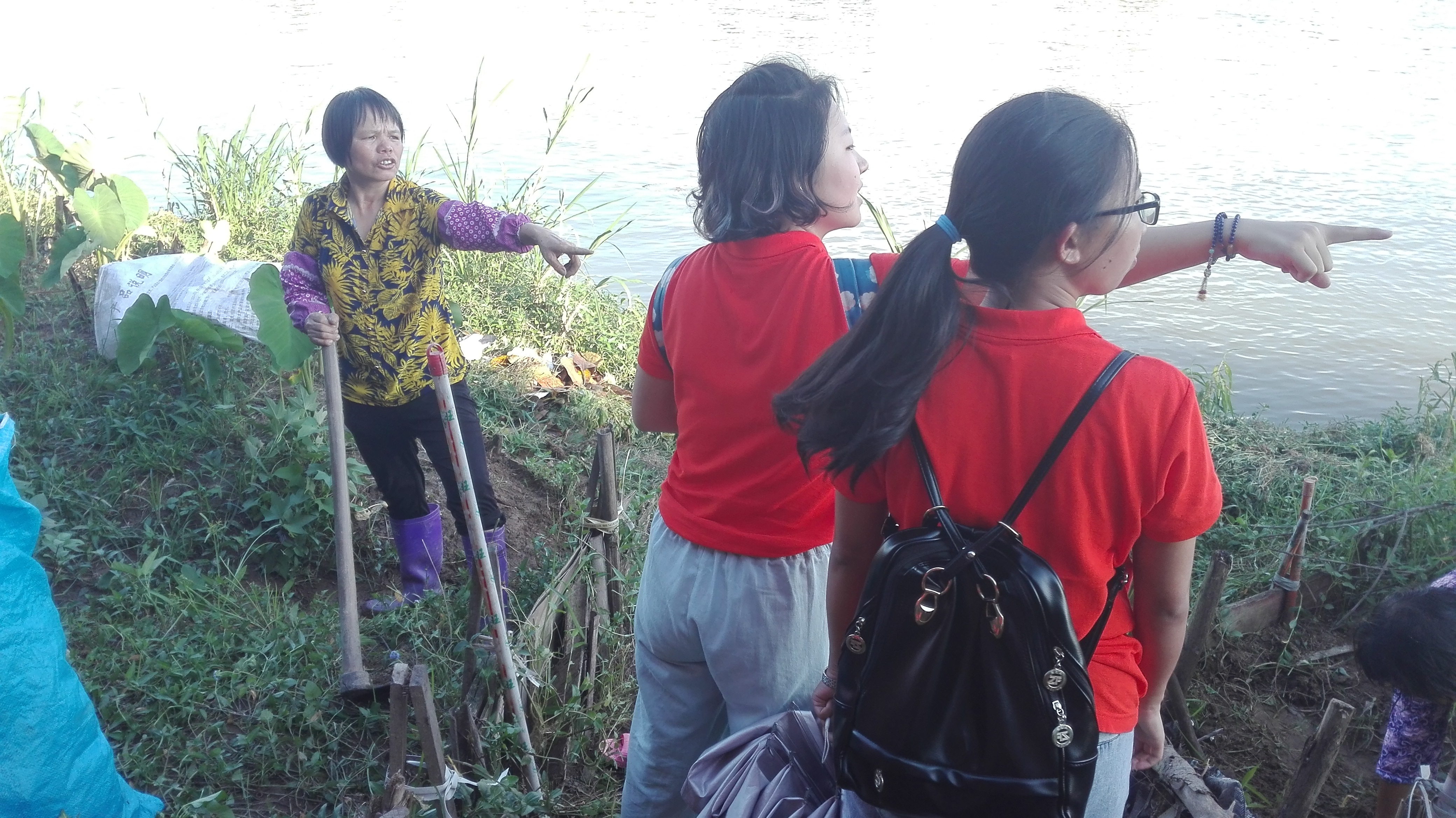 巡河途中,队员们除了观察河段水体情况之外,还一边与沿途当地居民交流其对汀江治理的看法。“上杭汀江的水质相对于中下游总体上还是保护的很到位的,就像这些沿江耕种的农田,我们都是直接用汀江水灌溉的。”一位正在田里种植农作物的居民告诉队员们。其中,另外一名居民指着不远处的地方告诉队员们:“呐!这是我们县城污水治理的专用处理井,多亏了它们汀江才得以保护。”