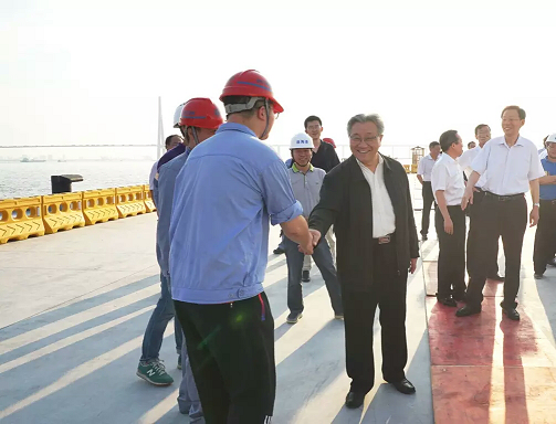 清风网综合讯:(特约记者 袁孝冲 常魁星 陈爱民)7月11日下午,第十二届全国人大财政经济委员会主任委员李盛霖、副主任委员李学勇和黄奇帆等一行莅临中交三航局三公司承建的南通市通海一期码头工程进行考察,与施工人员亲切交谈,听取了工程介绍,对工程施工取得的成绩予以肯定。江苏省人大常委会副主任刘永忠、江苏省交通运输厅副厅长丁军华、南通市委书记陆志鹏、南通市港口管理局局长王开亮以及中交三航局三公司执行董事兼总经理魏德新陪同考察。