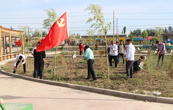 清风网综合讯:(通讯员 沙雅县工商局 沈伟伟)为落实县委“学转促”的部署,充分发挥党员先锋模范作用,为进一步发挥村民活动广场作用,琼古勒巴格村工作队组织党员干部在村民活动广场展开义务拔草并种植向日葵活动。