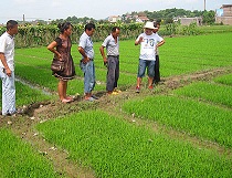 新邵陈家坊镇农技人员田头指导晚稻秧苗管理