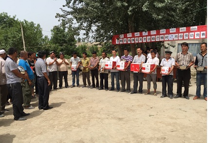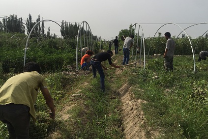 7月14日,在沙雅县古勒巴格镇克其克古勒巴格村蔬菜大棚基地里,一场热火朝天的除草劳动竞赛开始了!村民们冒着炎炎烈日,挥动着镰刀、铁锹、铲子等工具,你追我赶干着,不到2个小时时间,80座大棚里里外外的草除的一根不剩。此次竞赛由沙雅县委编办驻村工作队和村“两委”班子共同组织。共计120余农民参加,工作队为24名村民发放了电饭锅、电烧水壶、不锈钢菜盆等奖品。