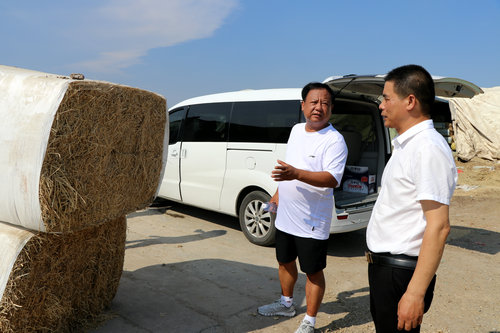 金东福向李红林介绍奶牛饲料来源