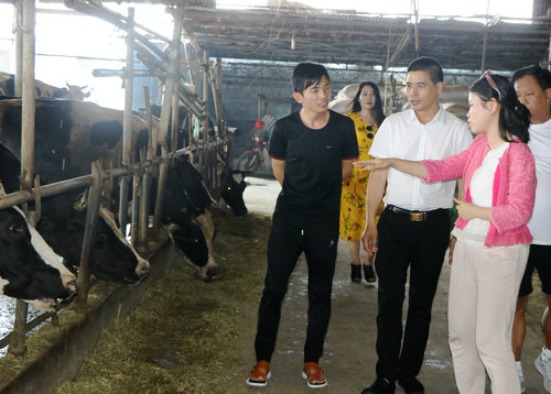 在浙江台州大友畜牧合作社奶牛养殖基地,冯梦、李红林等一行在该公司董事长倪林德、执行董事金东福的陪同下,冒着酷暑对整个奶牛车间存栏情况、规模、生产经营状况、饲料(草)结构和来源、粪污处理工艺及设施、生产和技术水平、牛奶品质和收购价格、奶牛场经营状况、市场行情、疫病防控等方面做了详细了解和考察。