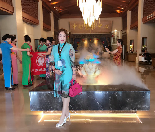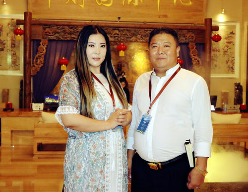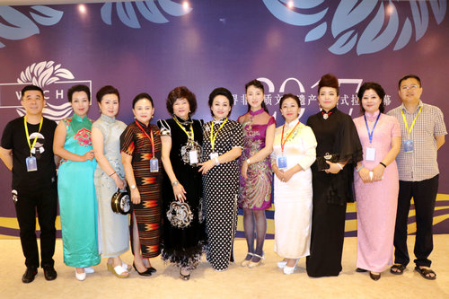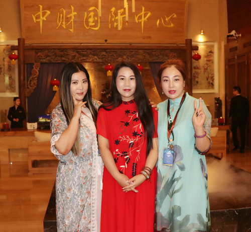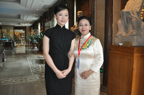 中国旗袍会孙英与著名歌唱家吕薇在开幕式现场合影留念