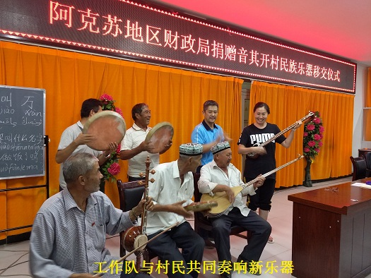 会后,村民图尔贡·阿西木向工作队高兴的说道: “我们村村民特别喜欢唱歌、跳舞,虽然我们自编自导了许多节目,但是苦于没有乐器,有些节目质量一直上不去。这下好了,有了工作队捐赠的这些民族乐器,相信我们能编排出更多优秀的节目,给村民带去更多的欢乐。”