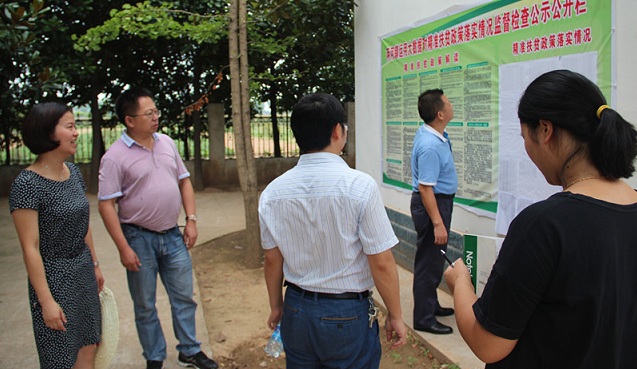 宜昌第三督查组在村察看精准扶贫政策落实公示栏