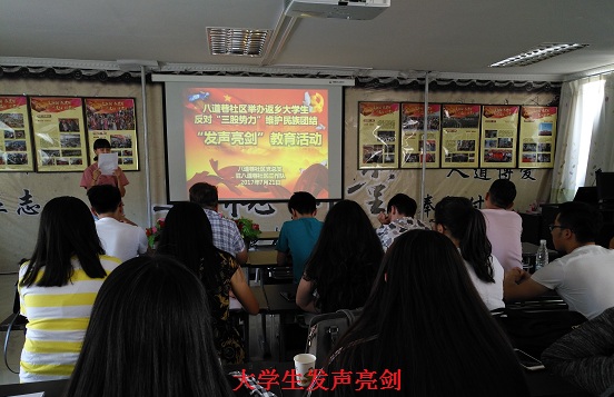 社区书记高颖玲向大学生们讲解了《反恐怖主义法》、《自治区去极端化条例》和人身安全自救互救常识。通过对大学生宣讲法律知识,使得大学生增强了安全意识,在危机降临时有能力保护自身安全。